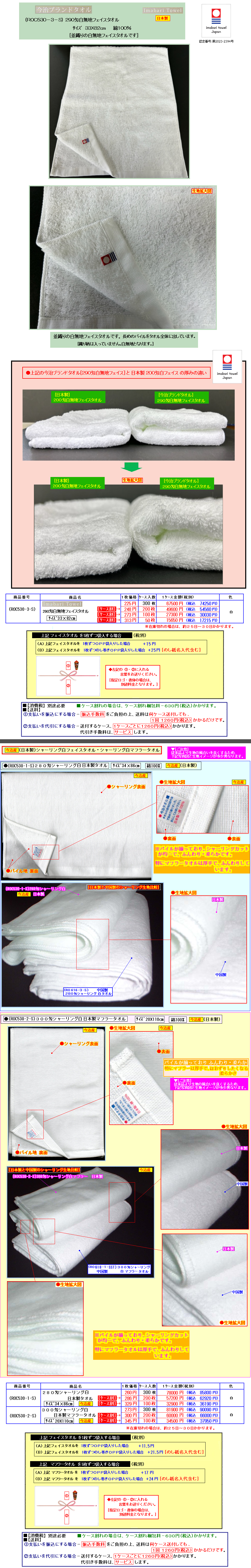 ●220匁〜300匁シャーリング白・カラータオル
