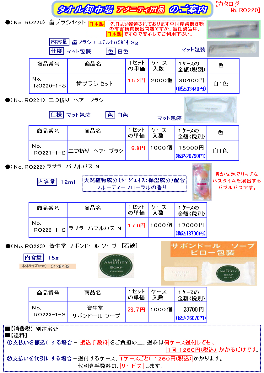 | ※[ ご注意/変更箇所 ] [北海道と離島と沖縄のみ。] 運賃高騰の為、北海道/北海道の離島/(本州・四国・九州)の離島/沖縄のみ送料が変わります。 ※上記以外の本州・四国・九州は今まで通り、1260円(税込)です。 @振込みにしても、送料が右記価格で、1ケースごとにかかります。 北海道--2350円(税込) 北海道の離島--2900円(税込) (本州・四国・九州)の離島--1850円(税込) 沖縄--2970円(税込) A代引きの場合は、北海道/北海道の離島/本州・四国・九州の離島/沖縄につきまして、上記送料以外に代引料が1ケースにつき、420円(税込)かかります。 ※離島と沖縄のみ、元々1ケースの荷物でもサイズ・重量により複数ケース扱いになることもございます。 また、近年、橋が通った場合も、運送会社の規定により離島扱いとなります。 |