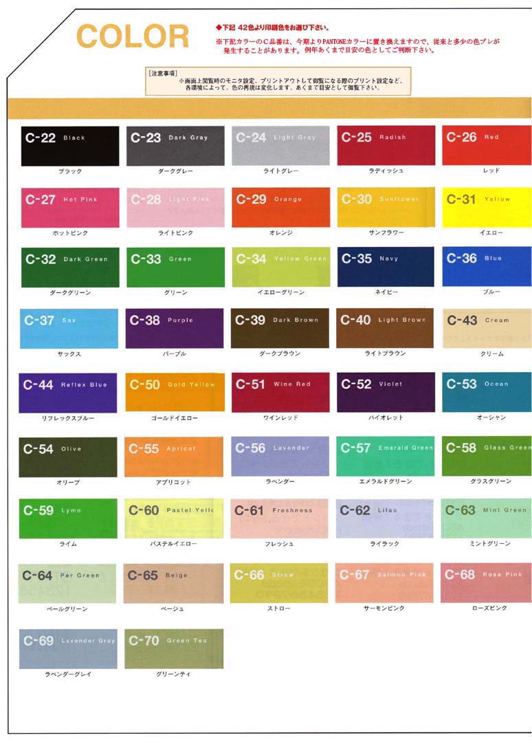 ▼色目を正確に出したい場合は、下記の DIC 品番 で選んで下さい。 (例)[DIC126イエロー]