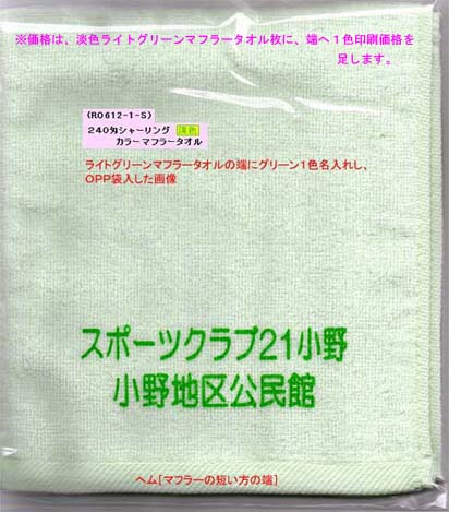 【◆マフラータオルの端へ1色名入れした見本画像】