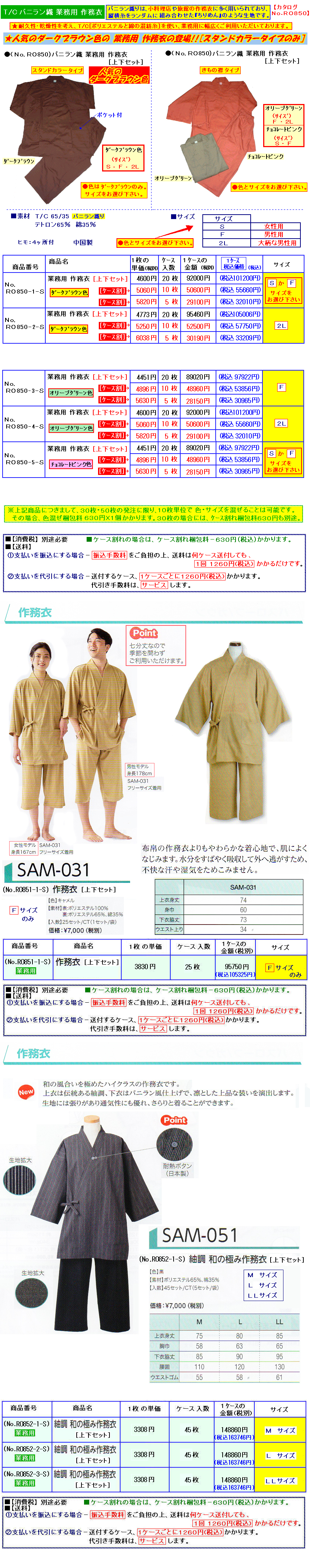 ●バニラン作務衣 色別サイズ 詳細ページへ