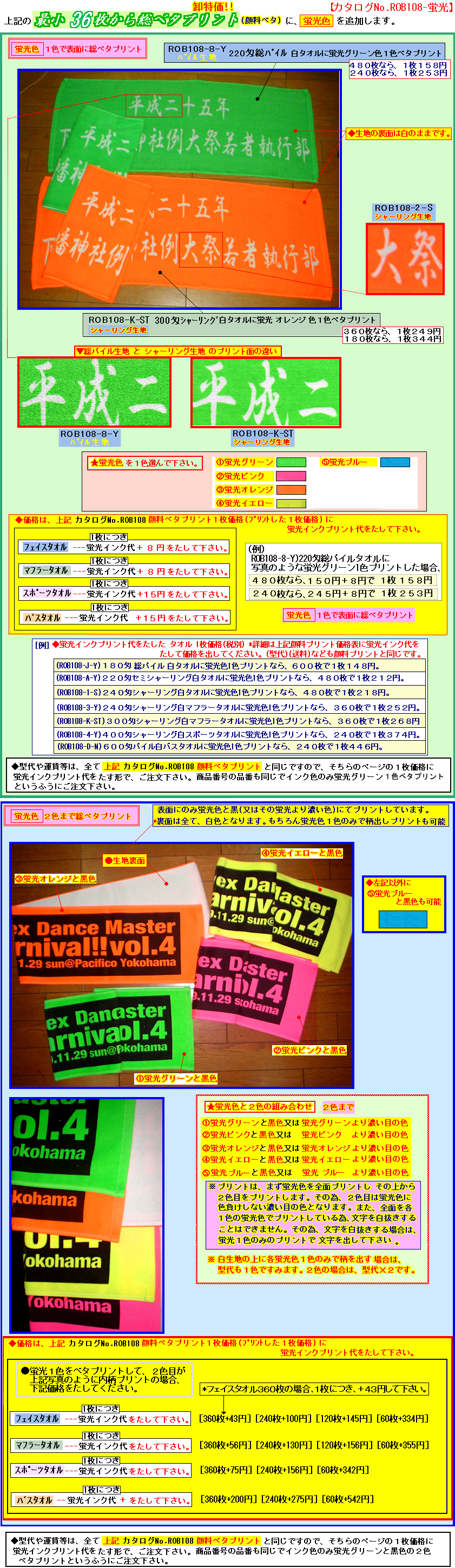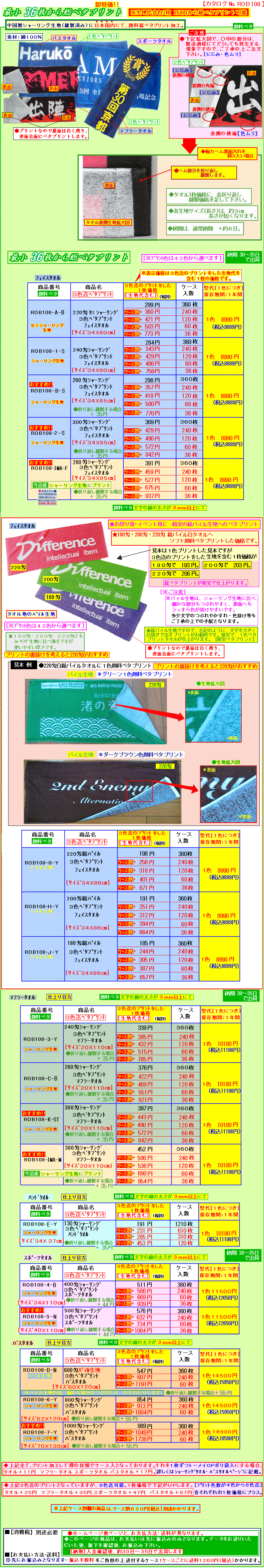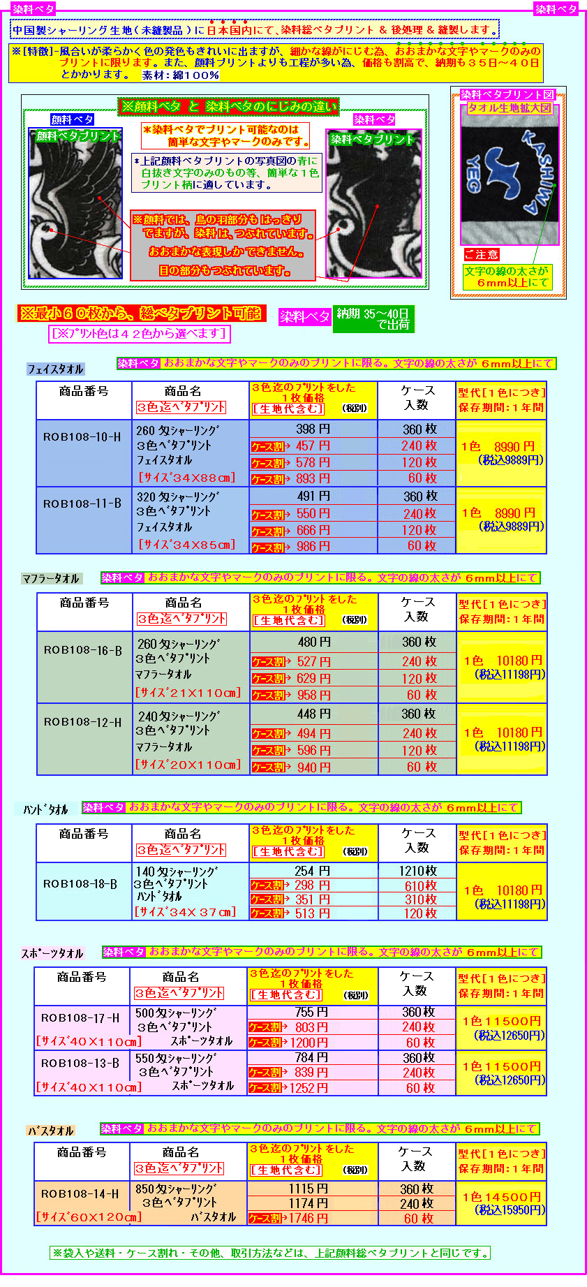 ●シャーリングバス・スポーツ・マフラータオル ページへ ( [例] 240匁白シャーリングマフラーに中ベタプリントした 1枚価格*156円ページ)