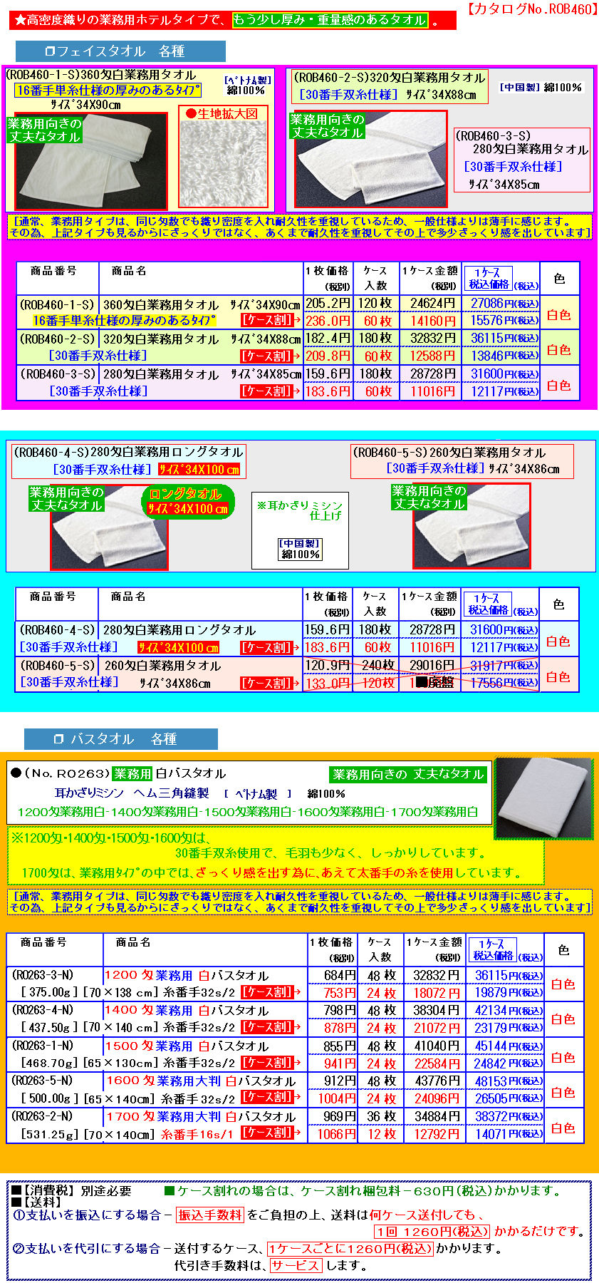 | ※[ ご注意/変更箇所 ] [北海道と離島と沖縄のみ。] 運賃高騰の為、北海道/北海道の離島/(本州・四国・九州)の離島/沖縄のみ送料が変わります。 ※上記以外の本州・四国・九州は今まで通り、1260円(税込)です。 @振込みにしても、送料が右記価格で、1ケースごとにかかります。 北海道--2350円(税込) 北海道の離島--2900円(税込) (本州・四国・九州)の離島--1850円(税込) 沖縄--2970円(税込) A代引きの場合は、北海道/北海道の離島/本州・四国・九州の離島/沖縄につきまして、上記送料以外に代引料が1ケースにつき、420円(税込)かかります。 ※離島と沖縄のみ、元々1ケースの荷物でもサイズ・重量により複数ケース扱いになることもございます。 また、近年、橋が通った場合も、運送会社の規定により離島扱いとなります。 |