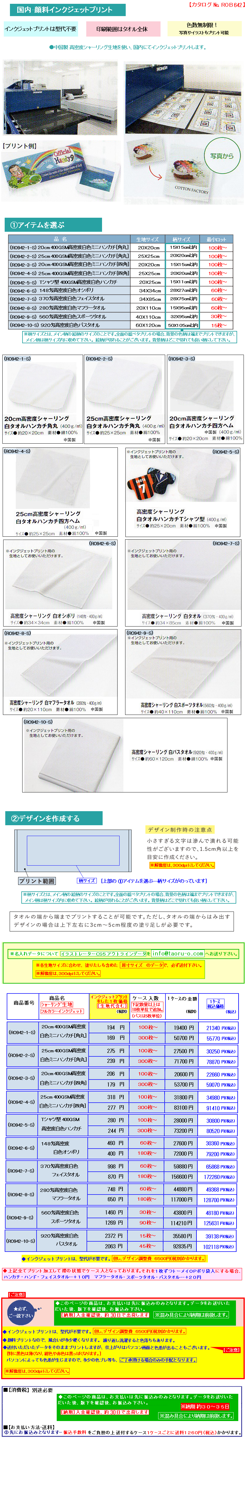 1枚33.2円 20cmサイズ シャーリングハンカチの端へプリントや刺繍するページへ。