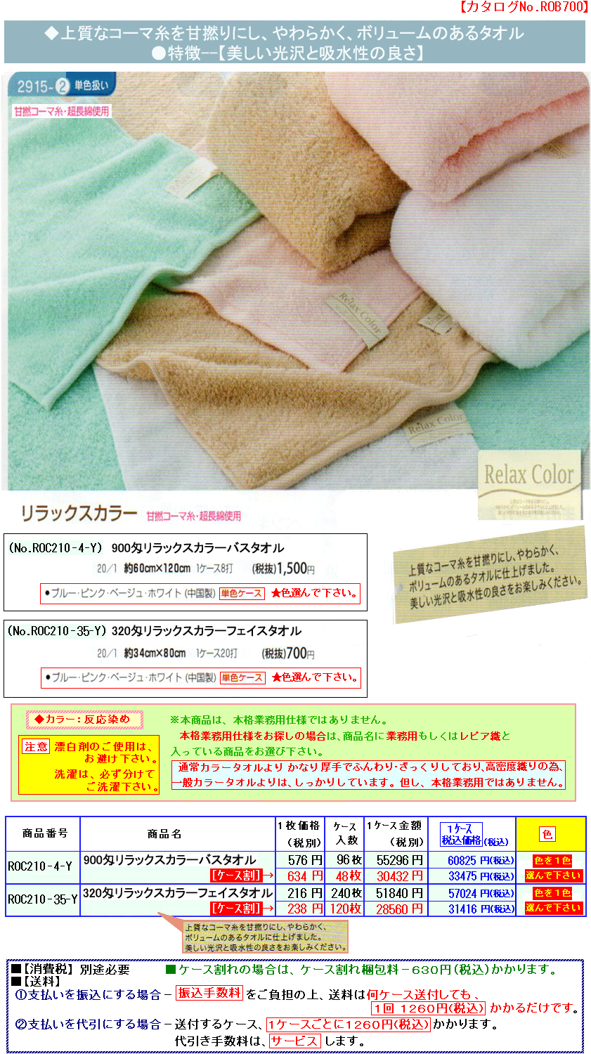 ●700匁〜800匁 白・カラーバスタオル188円〜-1番利用の多いタイプ