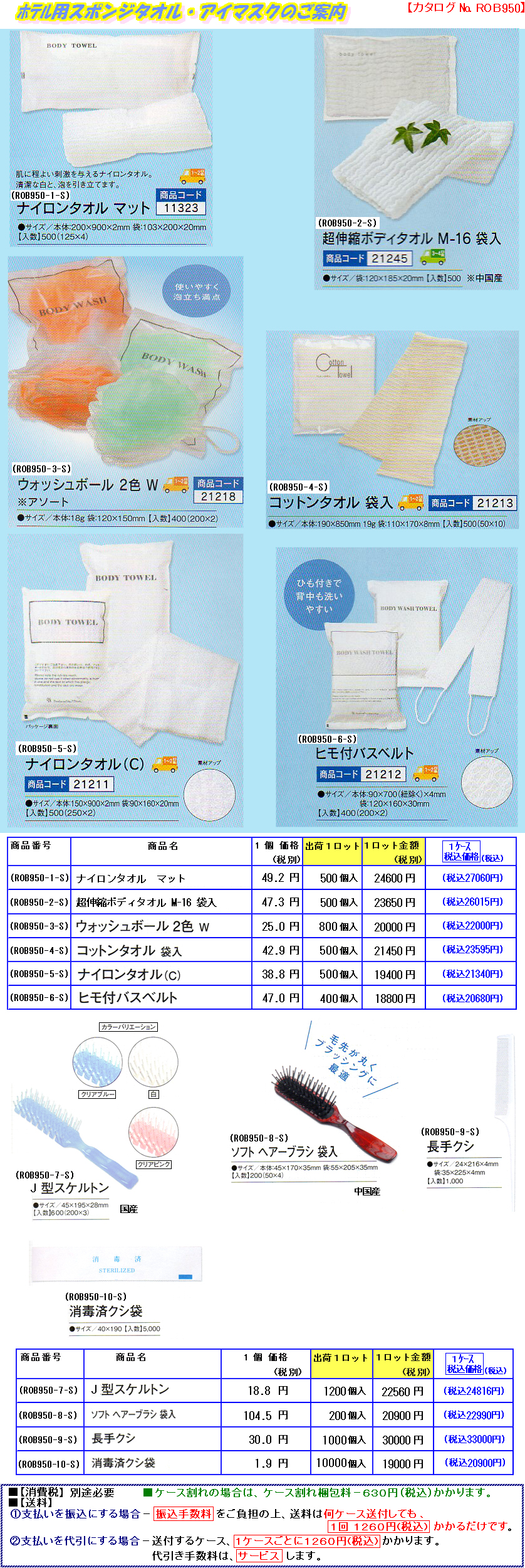 歯ブラシセット10.3円/カミソリ11.5円/ヘアーバンド6.6円/コーム8.6円コットンセット8.3円/シャワーキャップ8.5円/リンスインシャンプー12.3円/ソープ10.7円/ヘアーブラシ16.5円[業務用]
