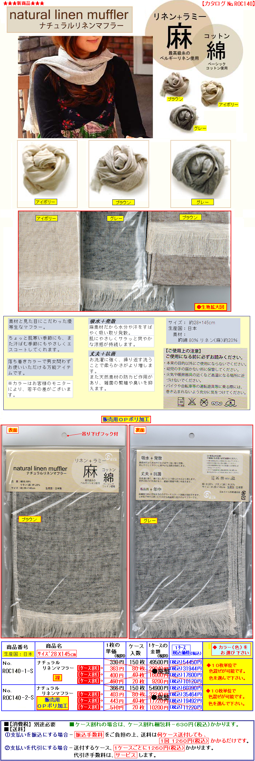 | ※[ ご注意/変更箇所 ] [北海道と離島と沖縄のみ。] 運賃高騰の為、北海道/北海道の離島/(本州・四国・九州)の離島/沖縄のみ送料が変わります。 ※上記以外の本州・四国・九州は今まで通り、1260円(税込)です。 @振込みにしても、送料が右記価格で、1ケースごとにかかります。 北海道--2350円(税込) 北海道の離島--2900円(税込) (本州・四国・九州)の離島--1850円(税込) 沖縄--2970円(税込) A代引きの場合は、北海道/北海道の離島/本州・四国・九州の離島/沖縄につきまして、上記送料以外に代引料が1ケースにつき、420円(税込)かかります。 ※離島と沖縄のみ、元々1ケースの荷物でもサイズ・重量により複数ケース扱いになることもございます。 また、近年、橋が通った場合も、運送会社の規定により離島扱いとなります。 |