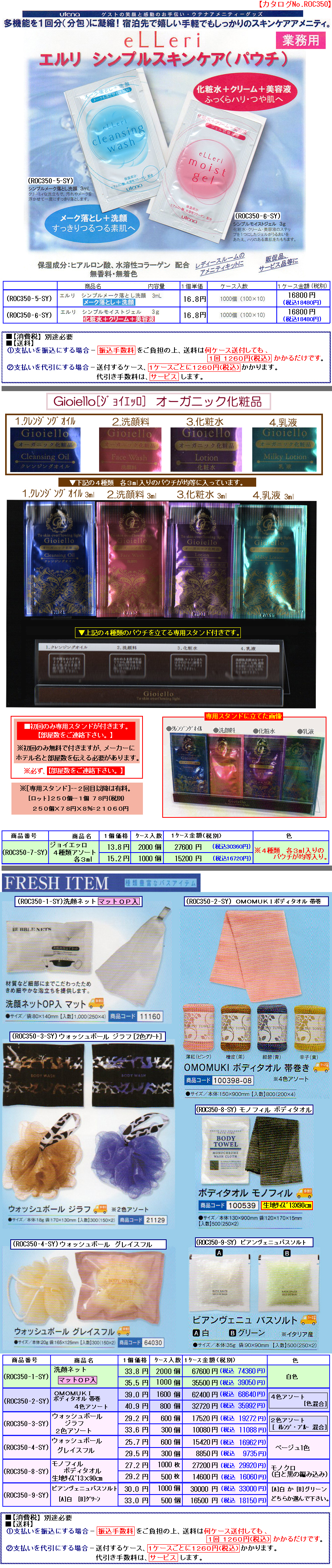 歯ブラシセット10.3円/カミソリ11.5円/ヘアーバンド6.6円/コーム8.6円コットンセット8.3円/シャワーキャップ8.5円/リンスインシャンプー12.3円/ソープ10.7円/ヘアーブラシ16.5円[業務用]