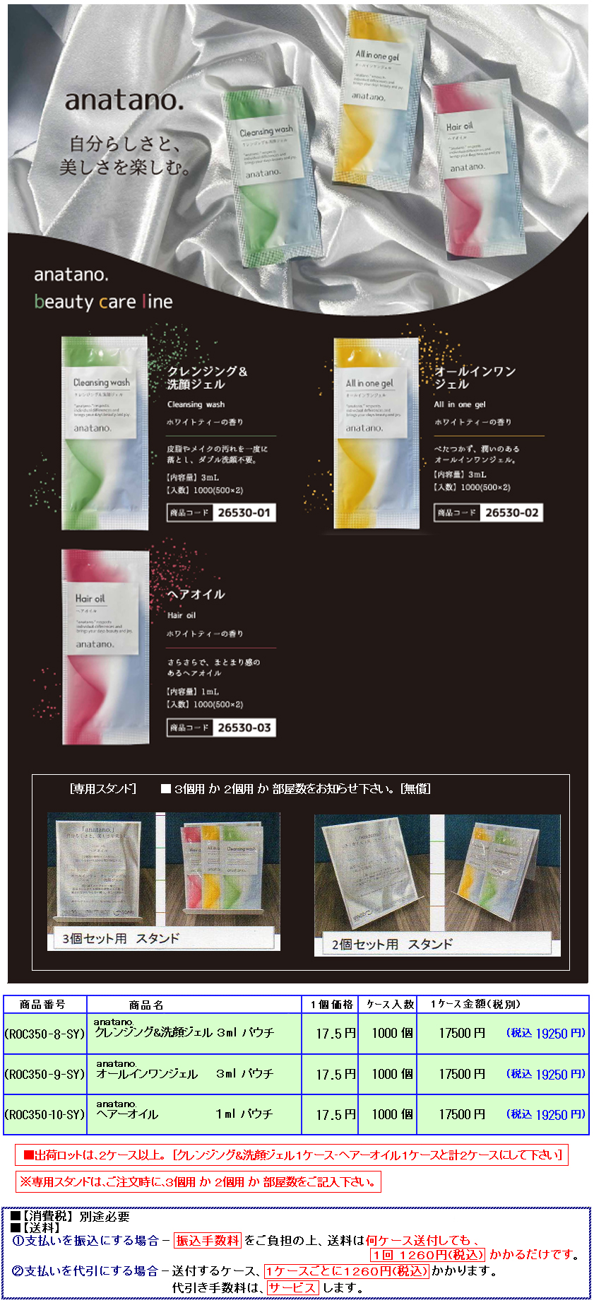 | ※[ ご注意/変更箇所 ] [北海道と離島と沖縄のみ。] 運賃高騰の為、北海道/北海道の離島/(本州・四国・九州)の離島/沖縄のみ送料が変わります。 ※上記以外の本州・四国・九州は今まで通り、1260円(税込)です。 @振込みにしても、送料が右記価格で、1ケースごとにかかります。 北海道--2350円(税込) 北海道の離島--2900円(税込) (本州・四国・九州)の離島--1850円(税込) 沖縄--2970円(税込) A代引きの場合は、北海道/北海道の離島/本州・四国・九州の離島/沖縄につきまして、上記送料以外に代引料が1ケースにつき、420円(税込)かかります。 ※離島と沖縄のみ、元々1ケースの荷物でもサイズ・重量により複数ケース扱いになることもございます。 また、近年、橋が通った場合も、運送会社の規定により離島扱いとなります。 |